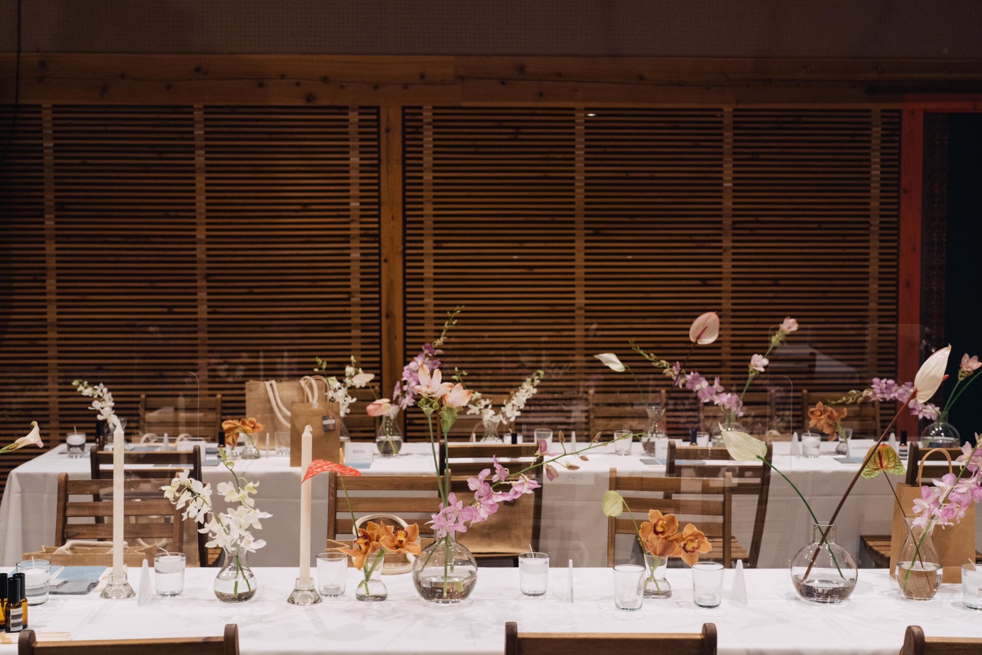 おふたりの好みやゲストの雰囲気をふまえて、会場装飾は甘くなりすぎないようにコーディネートしました。