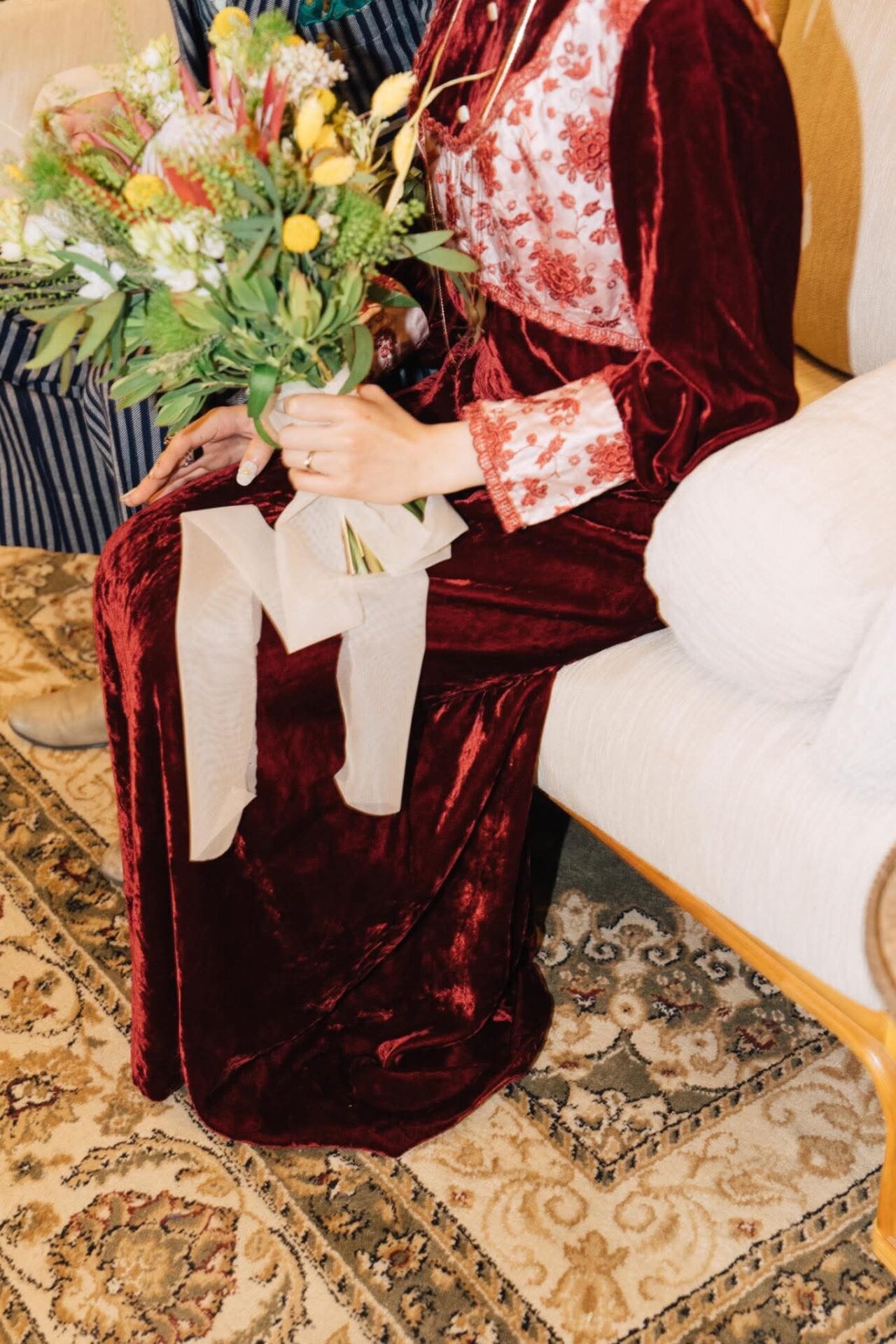 ちなみに、それぞれのお席にあるカラフルな布は、ゲストのみなさまにお渡しする引き出物袋。なんとおふたりがタイダイ染めで手作りされたものなんです!