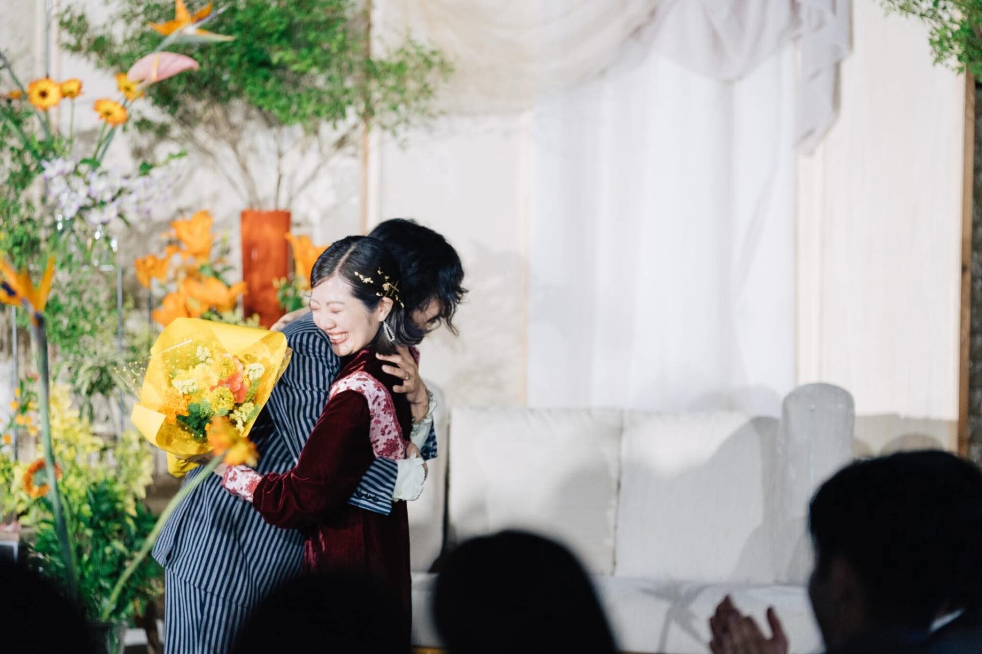 おふたりが考えたゲームをおこなうなど、終始ハッピーな音楽と笑い声に包まれた結婚式ですが、愛情深いおふたりだからこそ、ご家族やお互いへ想いを伝えるシーンでは、感動の涙が止まりませんでした。